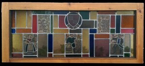 Bleiglasfenster mit Abbildungen zum Thema Wein