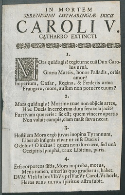 In Mortem Serenissimi Lotharingiae Ducis Caroli V. Catharro Extincti