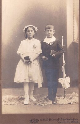 Foto Junge und Mädchen im Kommunionsanzug bzw. -Kleid