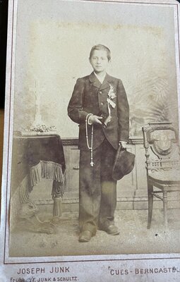 Foto Junge mit Kommunionsanzug und Rosenkranz