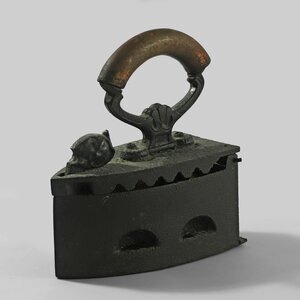 Flachbügeleisen mit Doppelsohle und Holzgriff