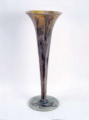 Vase mit Narzissen und Eidechse auf dem Fuß