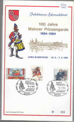 Jubiläumsbroschüre Mainzer Prinzengarde 1984 - 100 Jahre