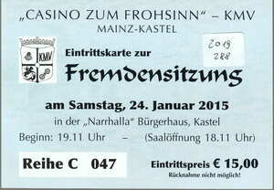 Eintrittskarte Casino zum Frohsinn KMV Mainz-Kastel 2015 - Fremdensitzung