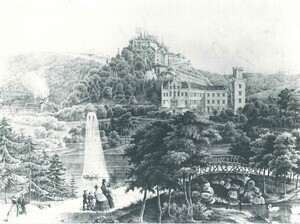 Schloss Sayn mit Park und Burgberg, Mitte 19. Jahrhundert
