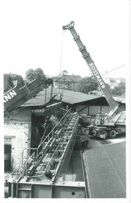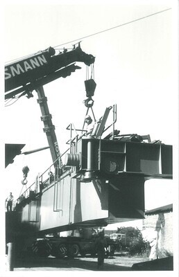 Verladen von Bauteilen in der Concordia-Hütte in Mülhofen, 1974