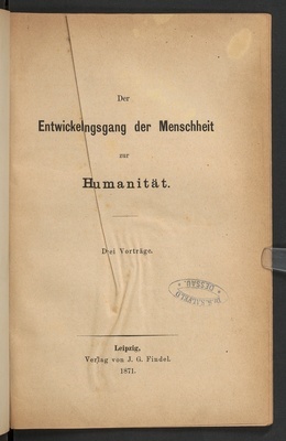 Der Entwicklungsgang der Menschheit zur Humanität : drei Vorträge