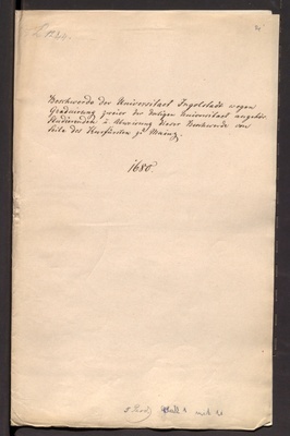L 1244 - Beschwerde der Universität Jngolstadt wegen Graduirung zweier derselben angehörigen Studierenden und Abweisung dieser Beschwerde seitens des Kurfürsten zu Mainz. 5 Prod.