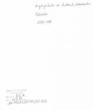 L 1361 - Von Seiten des regierenden Grafen von Solms wird bei der Mainzer Juristenfakultät das Ersuchen um Rücksendung von Akten gestellt, welche dahin zur Abfassung eines Urteils in Sachen des Regierungsassessors Buß gegen die Schutzjüdin Sara zu Lich versendet worden waren. 5 Prod.