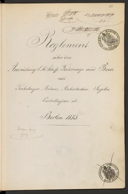 Reglement über die Ausrüstung S. M. Schiffe, Fahrzeuge und Boote mit Takelagen, Ankern, Ankerketten, Segeln, Verholtrossen etc.