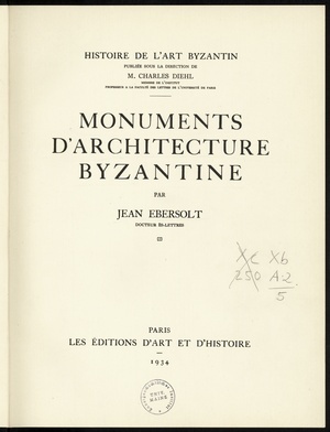 Monuments d'Architecture Byzantine / Jean Ebersolt