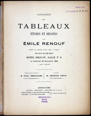 Catalogue de tableaux, etudes et dessins par Emile Renouf : Versteigerung im Hotel Drouot, Paris, 30.11. 1894