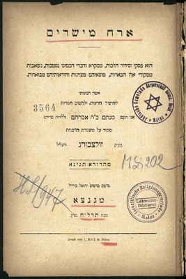 Sefer Hegyon Shelomoh : kolel tiḳunim le-s[efer] he-ʻArukh, ʻal pi ketav yad ... uve-sof ha-sefer hosafti ʻod beʼurim ṿe-gam sipaḥti ʻod tosafot le-sifri Limud ʻArukh ʻal mas. Shabat u-Verakhot ... / Shelomoh ben Yitsḥaḳ Dov ha-Leṿi Bamberger