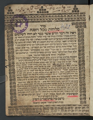 Seder seliḥot mikol hashanah / von Jacob Katz