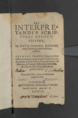 Ars interpretandi s. scripturas absolutissima / Sixto Senensi