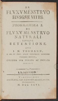 De Flvxv Menstrvo Natvrali Eivsqve Retentione ; Programma I / Qvo I. N. Thomann, M. Dr. Et Prof. AtQve Principalis Nosocomii Ivlianabi Medicus, Collegia Sva Pvblica Ac Privata Indicit