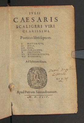 Julii Caesaris Scaligeri poetices libri septem : I. Historicvs, II. Hyle, III. Idea, IIII. Parasceve, V. Criticvs, VI. Hypercriticvs, VII. Epinomis ; ad Syluium filium