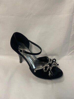 Schwarze Sandaletten mit Glitzersteinen und Schleife