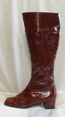 Rotbrauner Damenstiefel aus Lackleder mit Ziereinschnitten