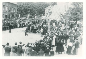 Aufstellen des Kirmebaumes, Kirchplatz Bendorf, 1923