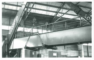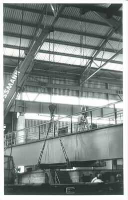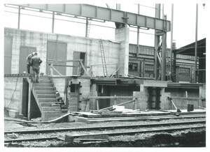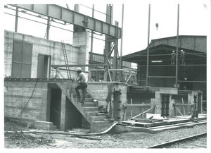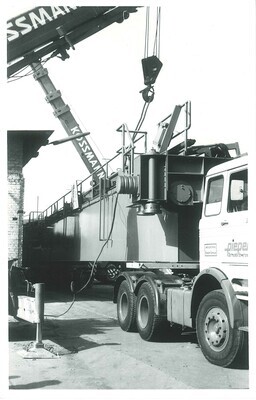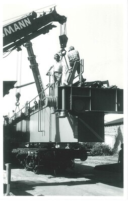 Entladen von Bauteilen in der Concordia-Hütte in Mülhofen, 1974