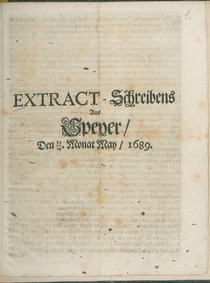 Extract-Schreibens Aus Speyer/ Den 19/29. Monat May/ 1689.