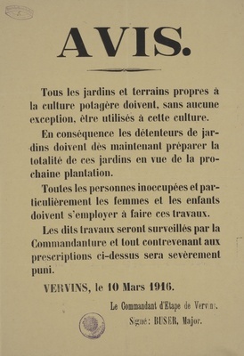 Plakat in Vervins, Frankreich, 1916