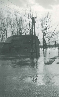 Hochwasser am Rheinhafen Bendorf, amerikanisches Militärdepot 1920