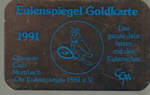 Ehrenkarte Carneval Club Mombach "Die Eulenspiegel" 1991 - Eulenspiegel Goldkarte