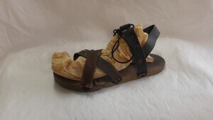 Kindersandale aus Leder und Stoff mit Holzsohle