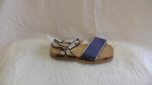 Blau-weiße Kindersandale aus Stoff mit Holzsohle