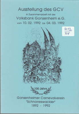 Festschrift Gonsenheimer Carneval Verein Schnorreswackler 1992 - 100 Jahre/ Ausstellung des GCV