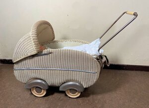 Puppenwagen mit Korbgeflecht aus Kunststoff