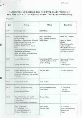 Sitzungsablauf Carneval Club Weisenau 14.02.1996 - Närrisches Kinderfest