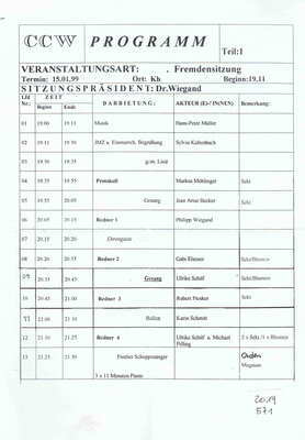 Sitzungsablauf Carneval Club Weisenau 15.01.1999 - Fremdensitzung