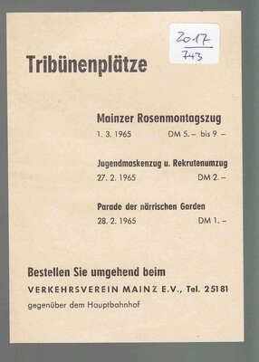 Flyer Mainzer Fastnachtsumzüge 1965 - Tribünenplätze