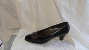 Schwarzer Pumps aus Lackleder mit Zierschleife und -lochungen