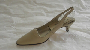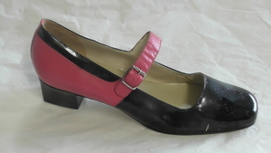 Riemenpumps aus Kunst- und Lackleder mit Zierlochungen