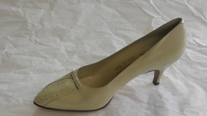 Dunkelbraun-weißer Pumps mit Zierlochungen