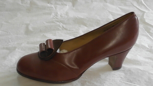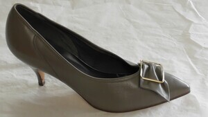 Dunkelbrauner Pumps mit gefaltetem Zierband