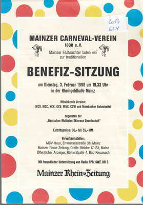Wrbeflyer zur Benefizsitzung Mainzer Carnaval Verein 1998