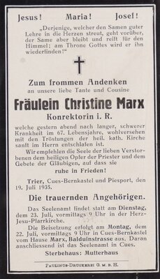 Totenkärtchen Christine Marx (19.7.1935)