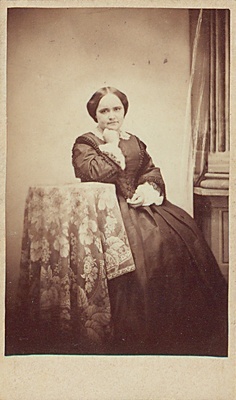 Fotoalbum Familie und Freunde - Bertha Cornelius, stehend, an einen Stuhl gelehnt