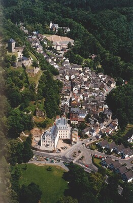 Blick auf Sayn mit Schloss, Burg und Abtei, 2001