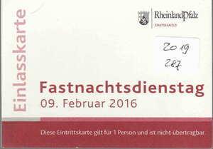 Eintrittskarte Staadtskanzlei 2016 - Empfang Fastnachtsdienstag
