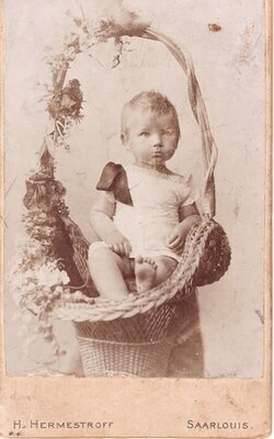 Foto Kind im Blumenkorb