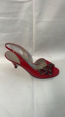 Rote Slingpumps mit Zehenöffnung