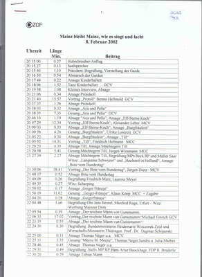 ZD Fernsehsitzung 2002 - "Mainz bleibt Mainz" - Bühnenprogrammablauf
