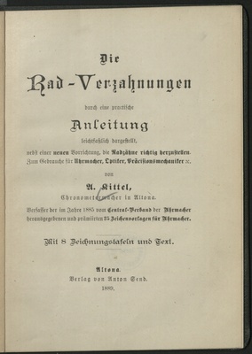 Die Rad-Verzahnungen durch eine practische Anleitung leichtfaßlich dargestellt, nebst einer neuen Vorrichtung, die Radzähne richtig herzustellen : zum Gebrauche für Uhrmacher, Optiker, Präcisionsmechaniker etc / von A. Kittel