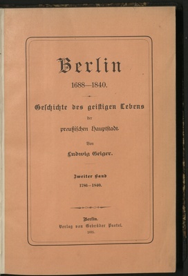 Berlin - 1786 - 1840 / von Ludwig Geiger